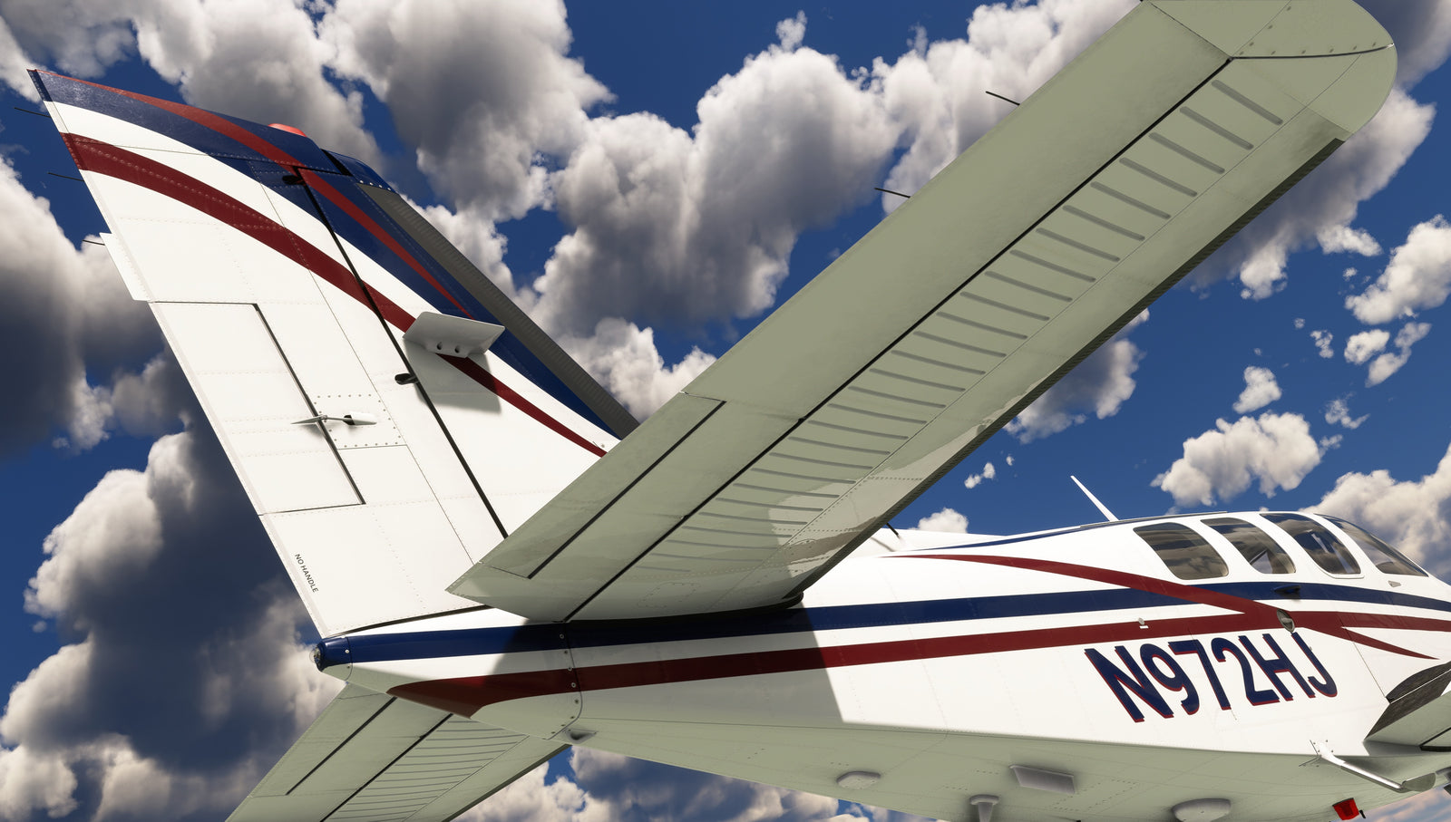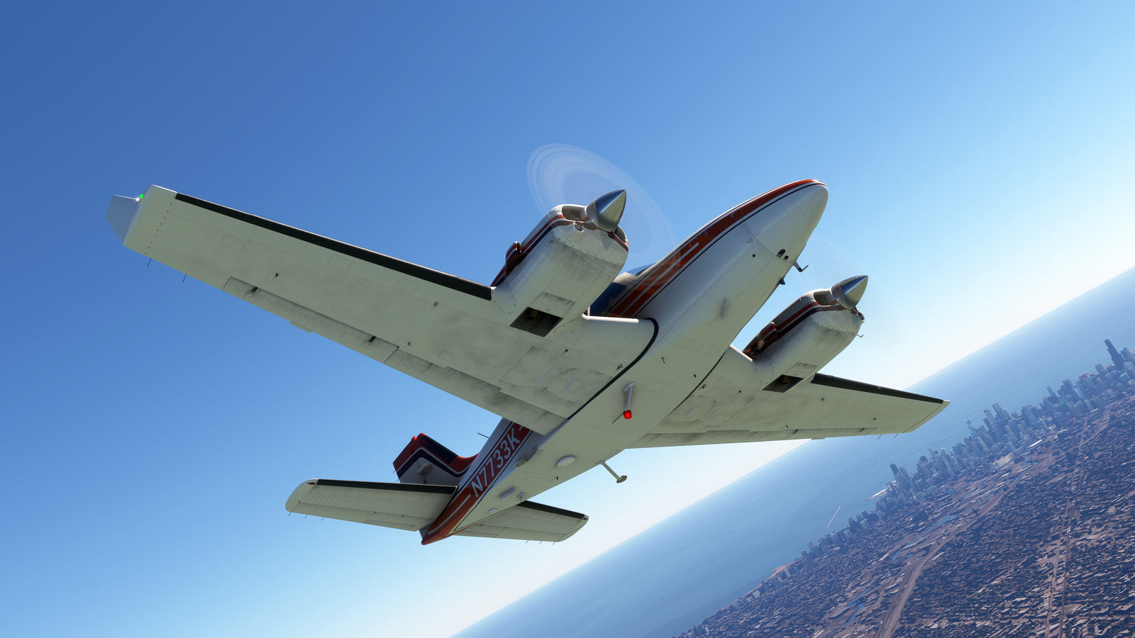 The Baron Professional features a flight model with performance to match the real-world aircraft based on real Baron owner feedback and in-flight data. Engine and aerodynamic performance should be within 2% of POH values, though no two engines are ever the same. The flight model uses the most up to date features available in MSFS 2020 and MSFS 2024, such as the new voxel CFD aerodynamics, CFD propeller, adverse yaw and stall parameters, and flexible tyre physics. Engine damage and fouling produce a rough running engine and decreased performance.