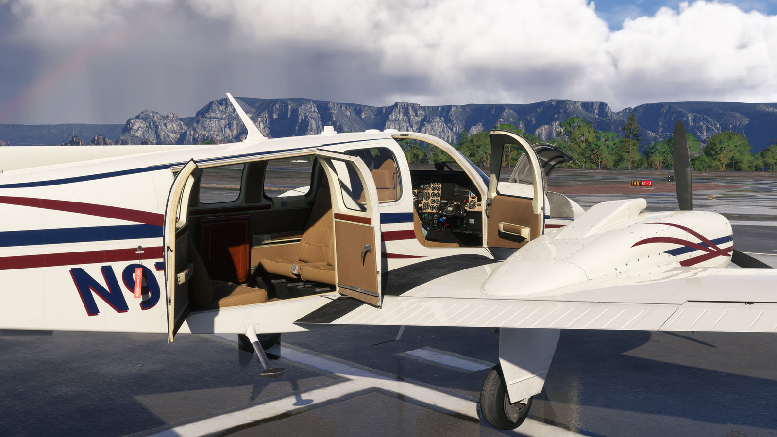 The Black Square Baron Professional comes with six paint schemes. The Baron Professional also comes with six interior upholstery packages that represent the aircraft through decades of service. This product makes use of Black Square’s highly customisable dynamic tail number system, which can be configured by livery makers. See the 'Custom Dynamic Tail Numbers' section of the manual for more information.