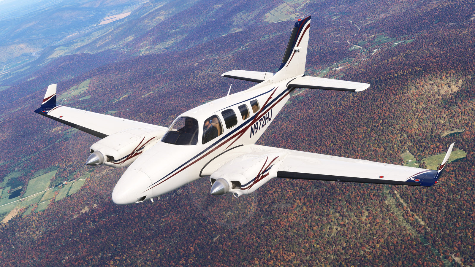 This product includes three airframes: the normally aspirated B58 of the mid-2000s, the 1984 B58TC and the pressurised 1985 B58P. Six distinctive interiors and six paint schemes are included from five decades of flying.