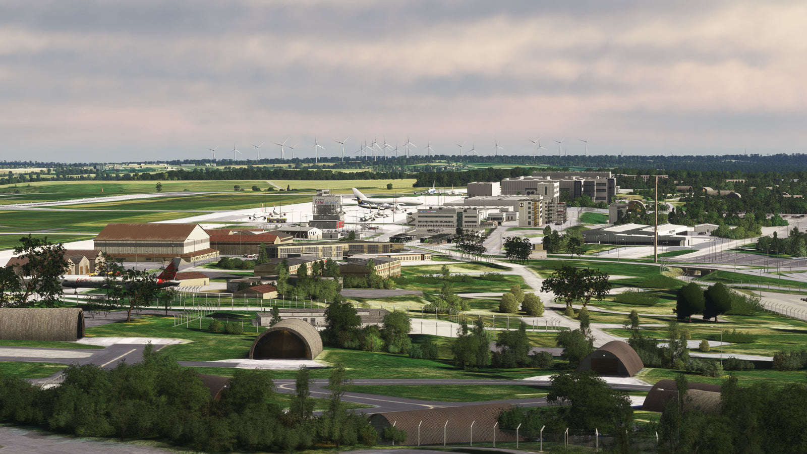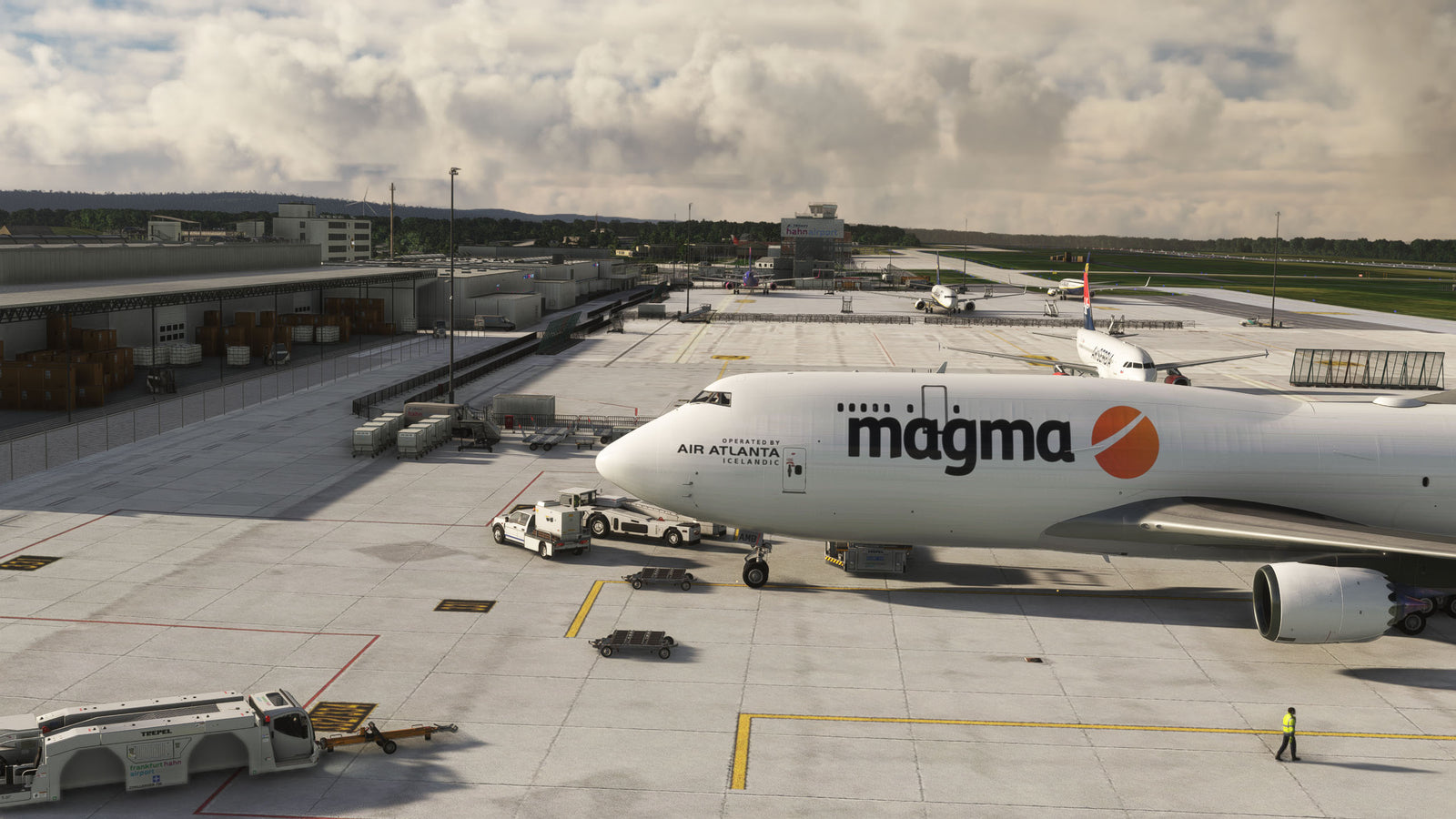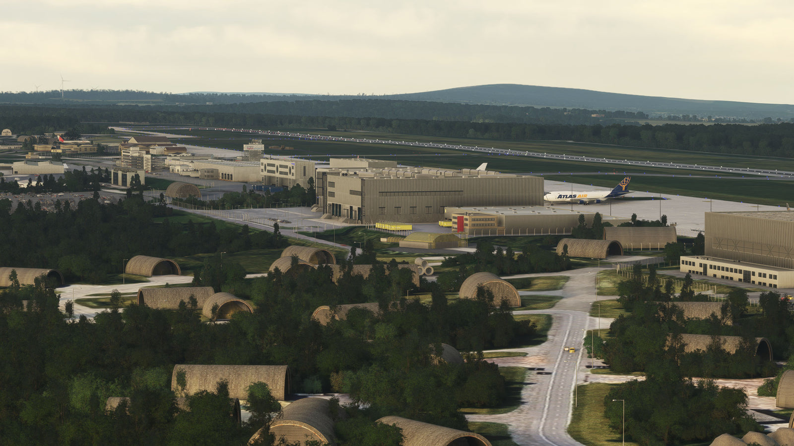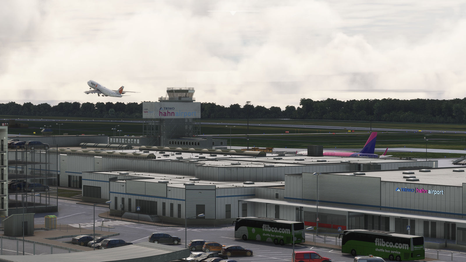 This scenery brings Hahn to life with high-quality modeling, realistic textures, and detailed surroundings - including the iconic control tower, terminal interiors, cargo facilities, and apron areas. Sloped terrain and accurate ground layouts ensure an authentic experience both in the cockpit and from the ground.