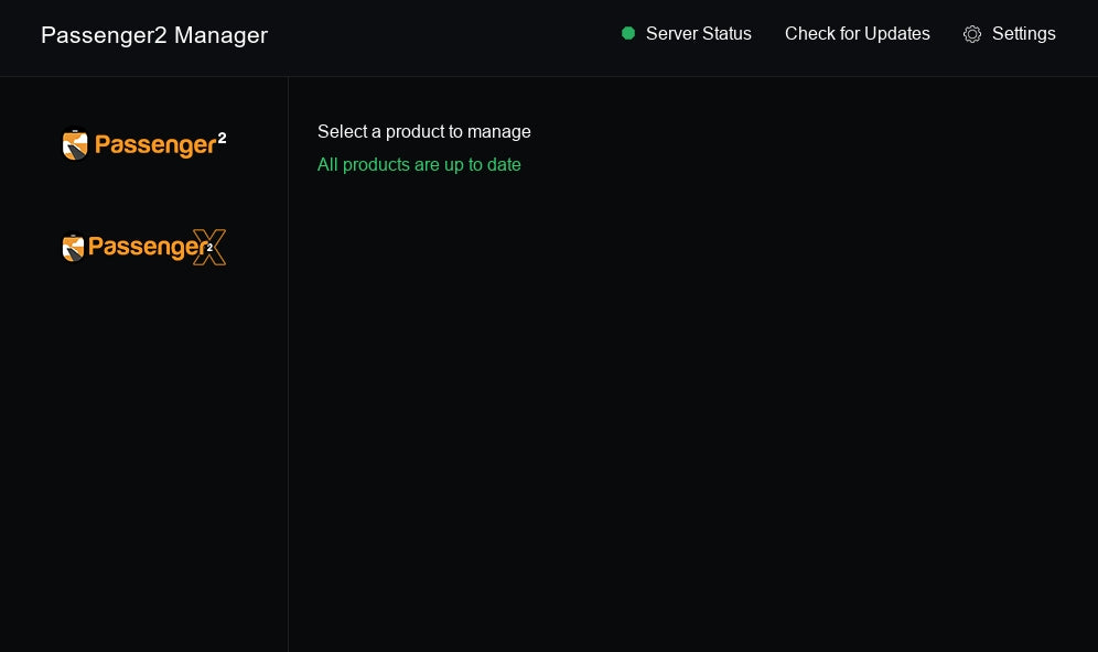 Passenger2x is installed via the Passenger2 Manager and requires an active internet connection for download, activation, and ongoing use.
