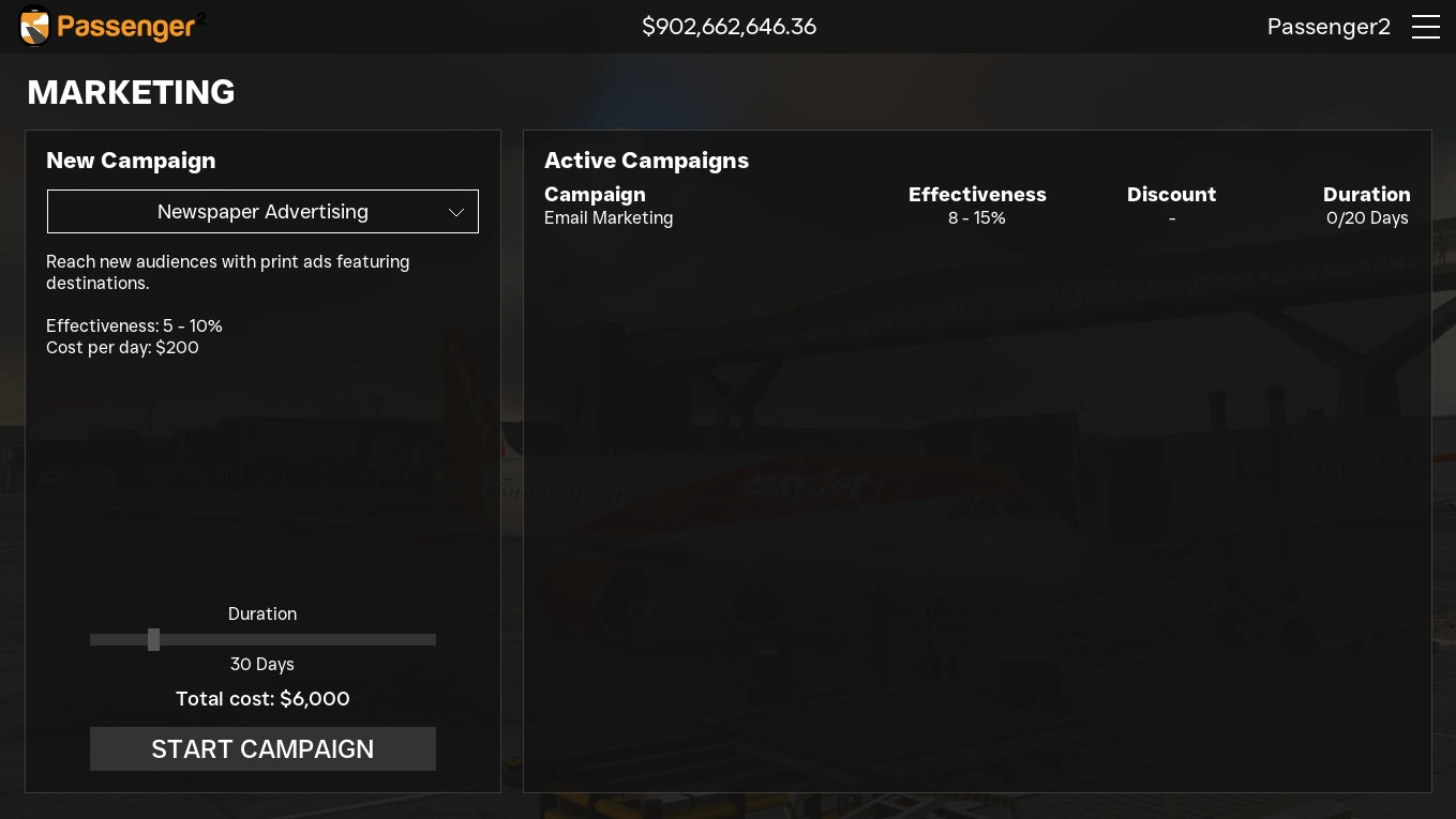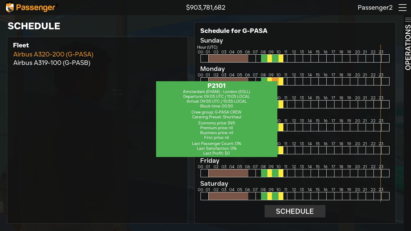 Passenger2x gives you the power to create, manage, and grow your own airline from the ground up. Start with a bank loan, purchase or lease aircraft, and build your flight network. You’ll define routes, set schedules, and customize onboard services—all while tracking passenger satisfaction, loyalty, and revenue.