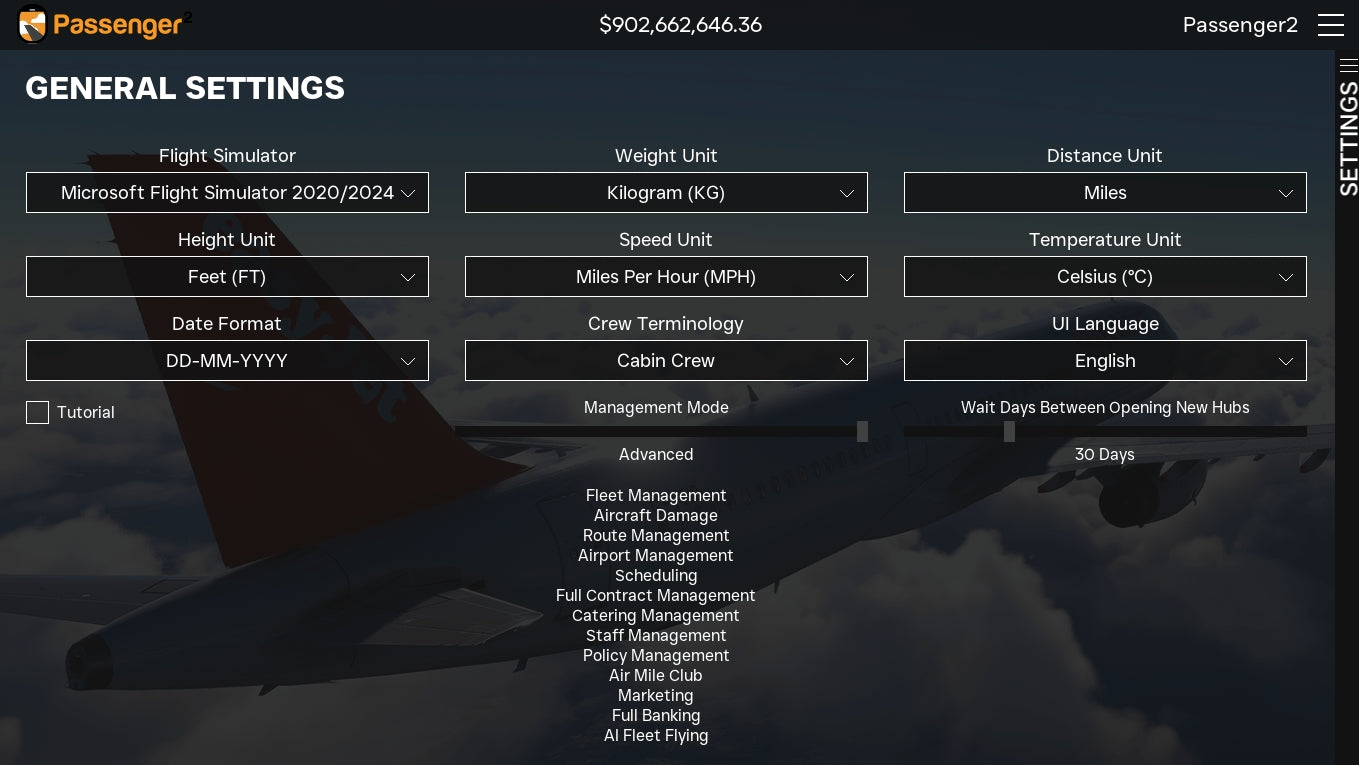 Passenger2x is a full-featured airline management simulation. More than just a passenger add-on, it transforms your flying experience into a dynamic business venture, where every flight is a strategic decision and every passenger is part of your airline’s evolving story.
