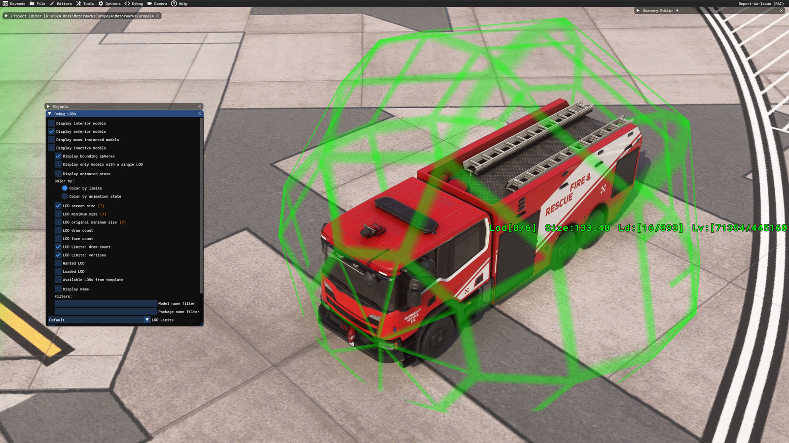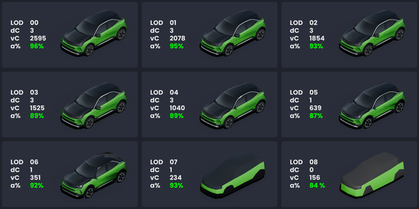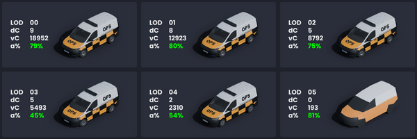 Pyreegue's MWR features 9 LODs for mass-instance traffic models and 6 LODs for HQ scenery vehicles with all models using an average of 40% fewer vertices than the allowed LOD limit.
