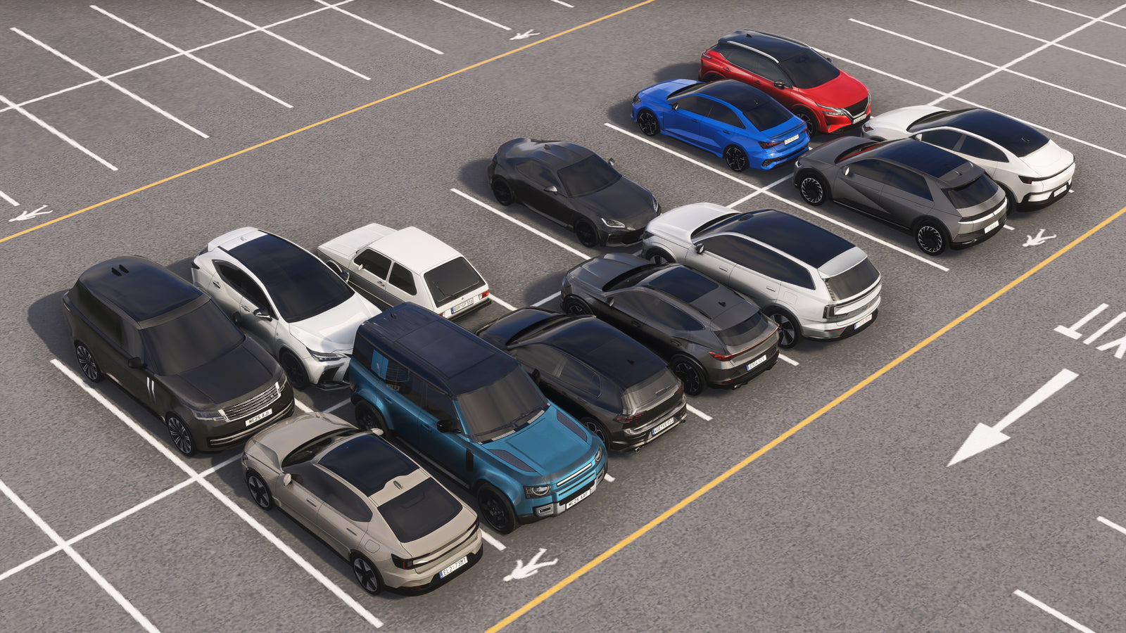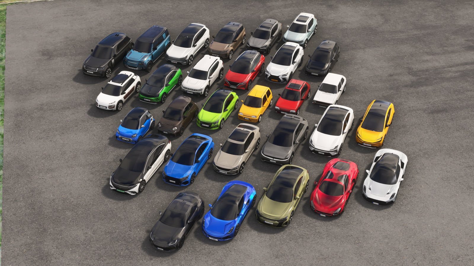 All vehicles in Pyreegue Motorworks Europe come with region-accurate European license plates, giving airports and road traffic a more authentic local feel. Each model uses custom plate designs that match real-world formats