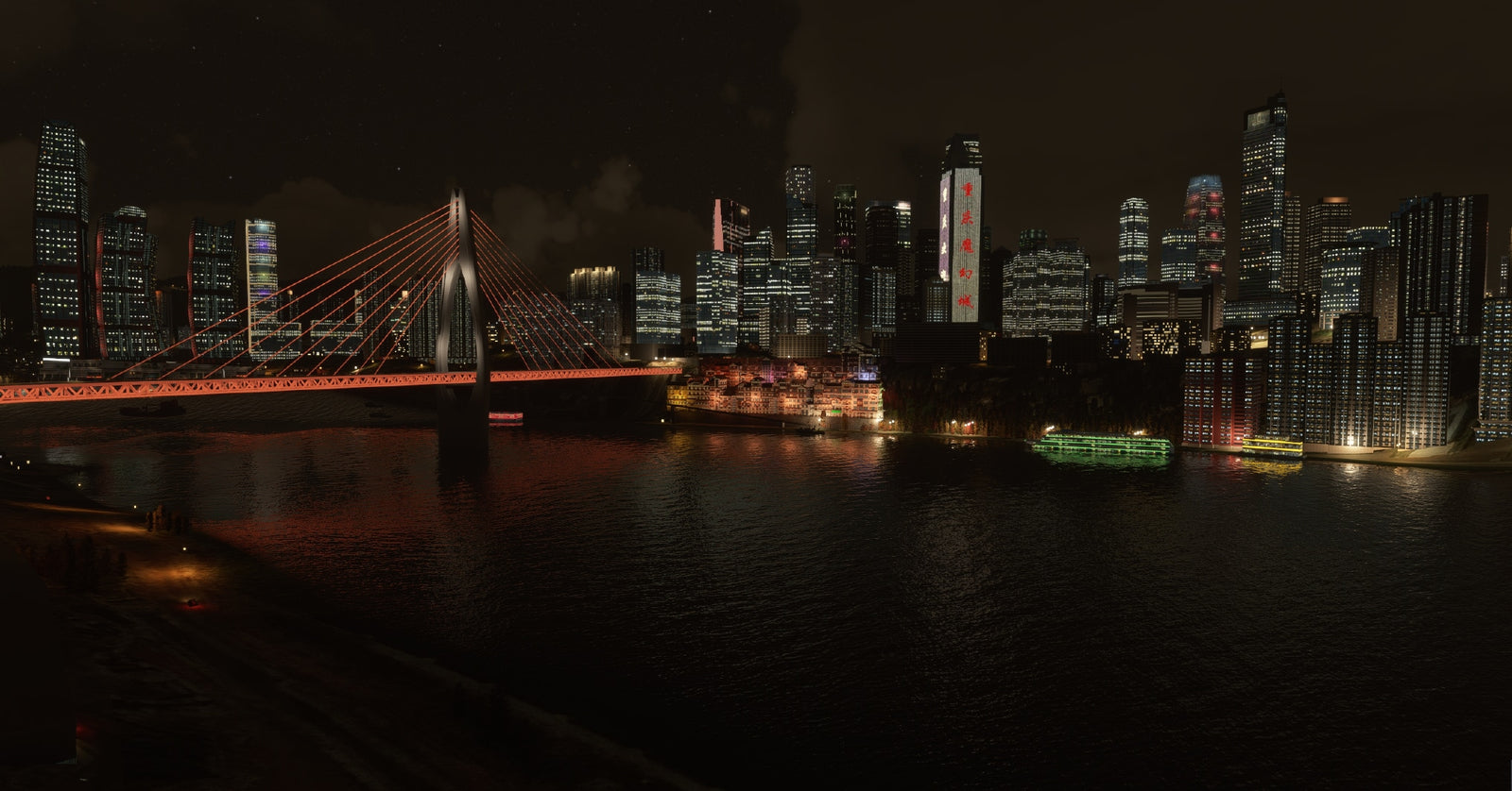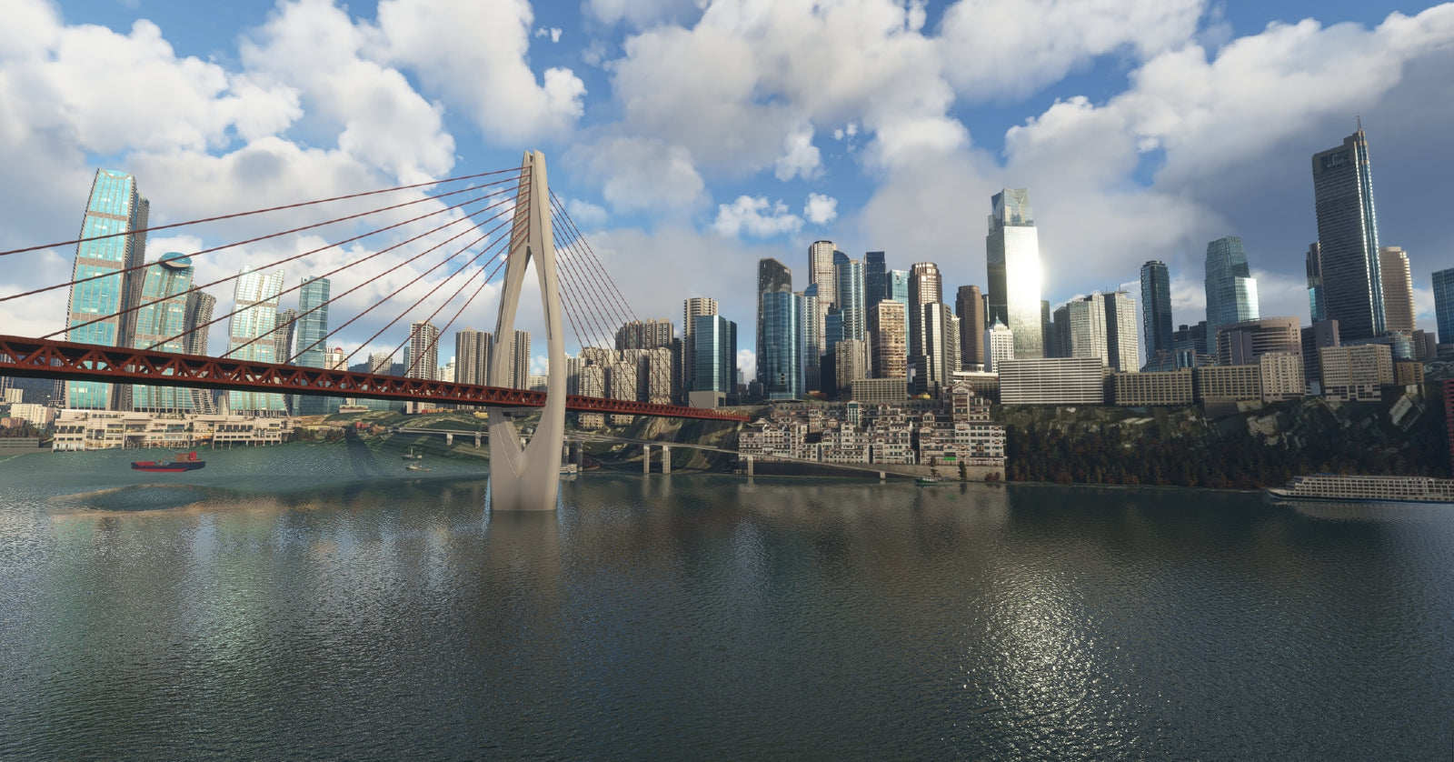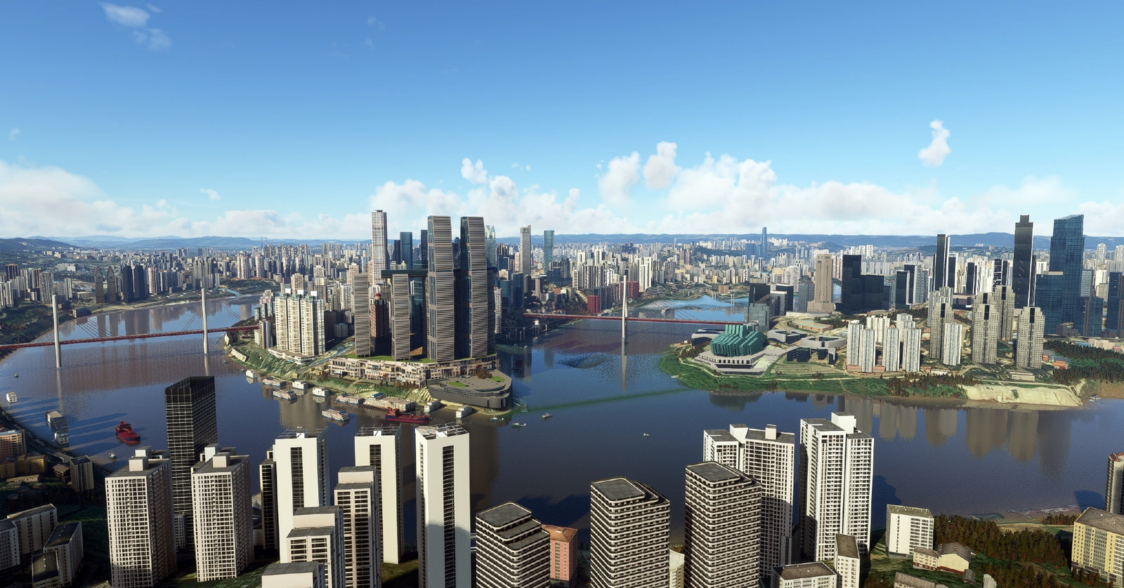 Chongqing is also the launching point for scenic boat trips down the Yangtze River through the Three Gorges Dam.This scenery focus on the Chongqing city center also includes a bonus simple design airport scenery: Jiangbei International Airport (ZUCK).
