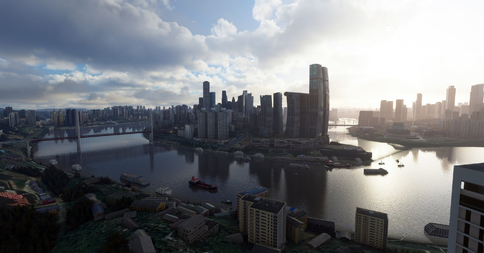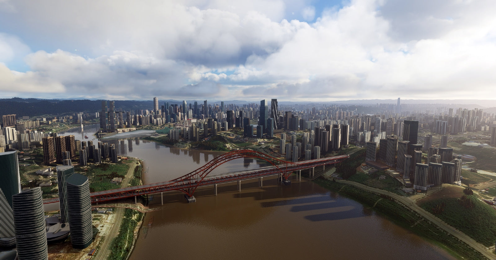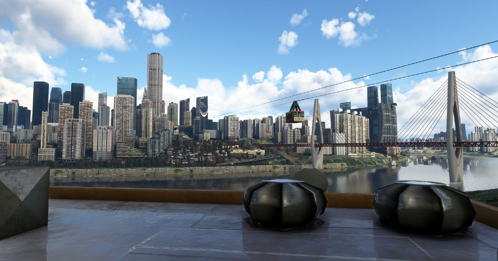 Chongqing is also the launching point for scenic boat trips down the Yangtze River through the Three Gorges Dam.This scenery focus on the Chongqing city center also includes a bonus simple design airport scenery: Jiangbei International Airport (ZUCK).