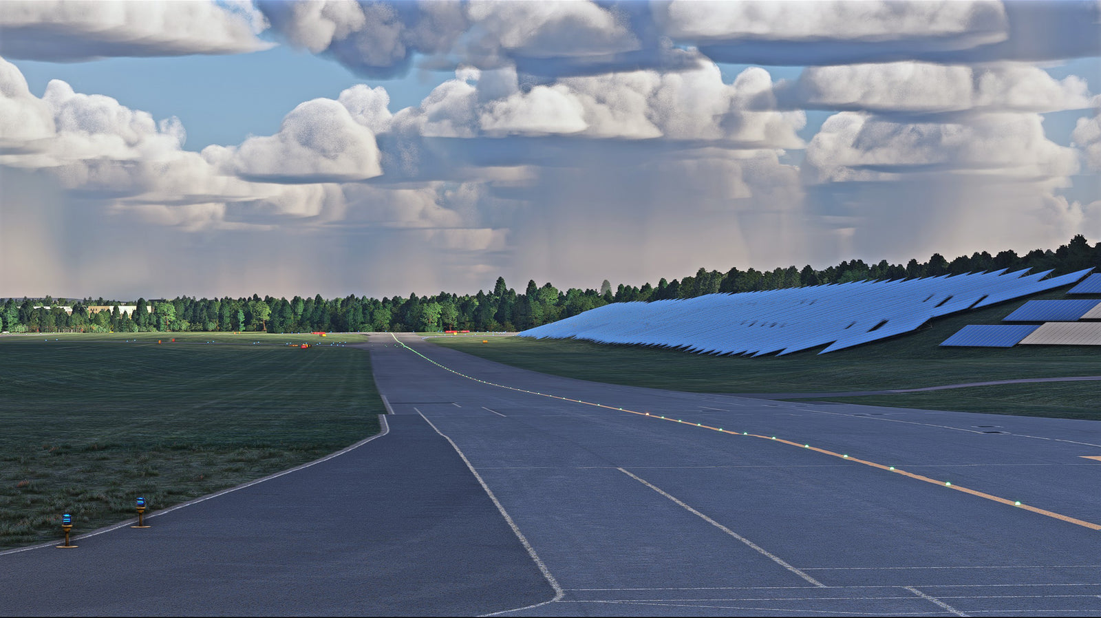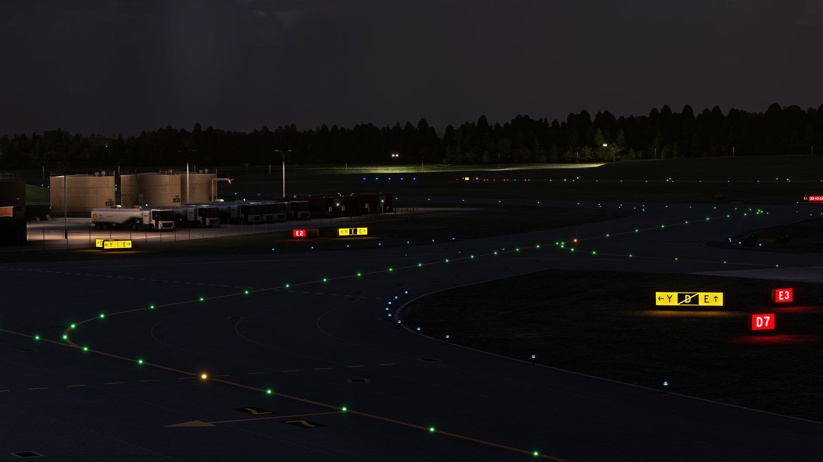 BHX includes a fully custom terrain model, carefully shaped to reflect the airport’s natural topography. The runway and taxiways feature realistic slopes, and elevation changes across the airport are accurately represented - including the hillside solar park next to Taxiway Bravo.